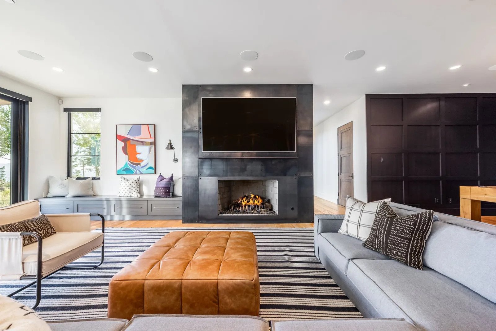 Floating stairs lead up to a private office with a heated deck, and a primary suite with wraparound views that allow you to catch colorful sunrises and sunsets. A second floating staircase leads down to an inviting family room where you can watch or play games, make craft cocktails at the bespoke bar, or take it outside to the large private hot tub on the patio. A bunk room with 6 custom full sized bunks will be a hit with kids and grandkids of all ages.